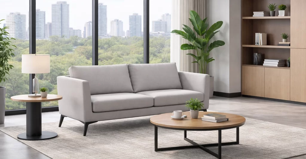 Xinda Clover’s Approach: Our lounge collections feature soft edges and architectural flair. These pieces turn a “styled office” into a true creative hub.