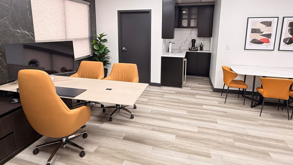To resonate with the need for a sophisticated, contemporary, and forward-looking ambiance, we proposed a height-adjustable executive desk that seamlessly integrates health-conscious functionality with an upscale design aesthetic. Paired with high-grade leather office chairs, this recommendation strikes an optimal balance between quality, comfort, and visual appeal.