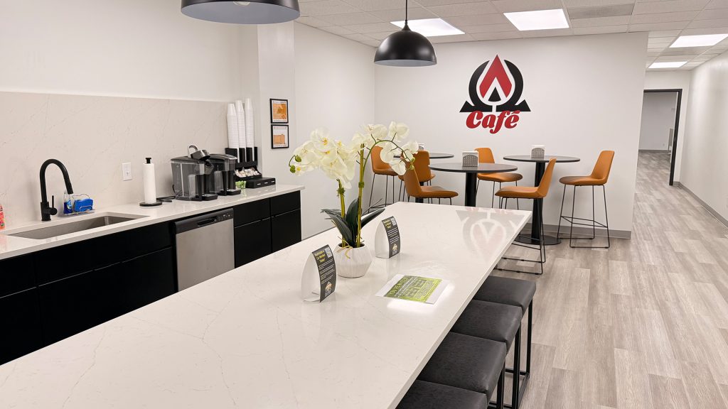 These on-site photos show the consulting firm’s office renewal. Cubicle, open area, GM zone and training area all fit needs perfectly.