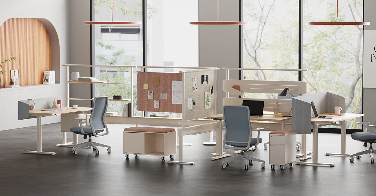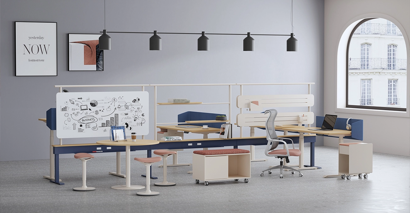The system’s fully modular design makes it effortless to adapt to evolving office spaces and growing teams. You can seamlessly rearrange workstation layouts, add or remove desk segments, swap out privacy screens or accessories, and even convert single-sided power beams to double-sided by integrating additional electrical units directly into the integrated cable raceways.