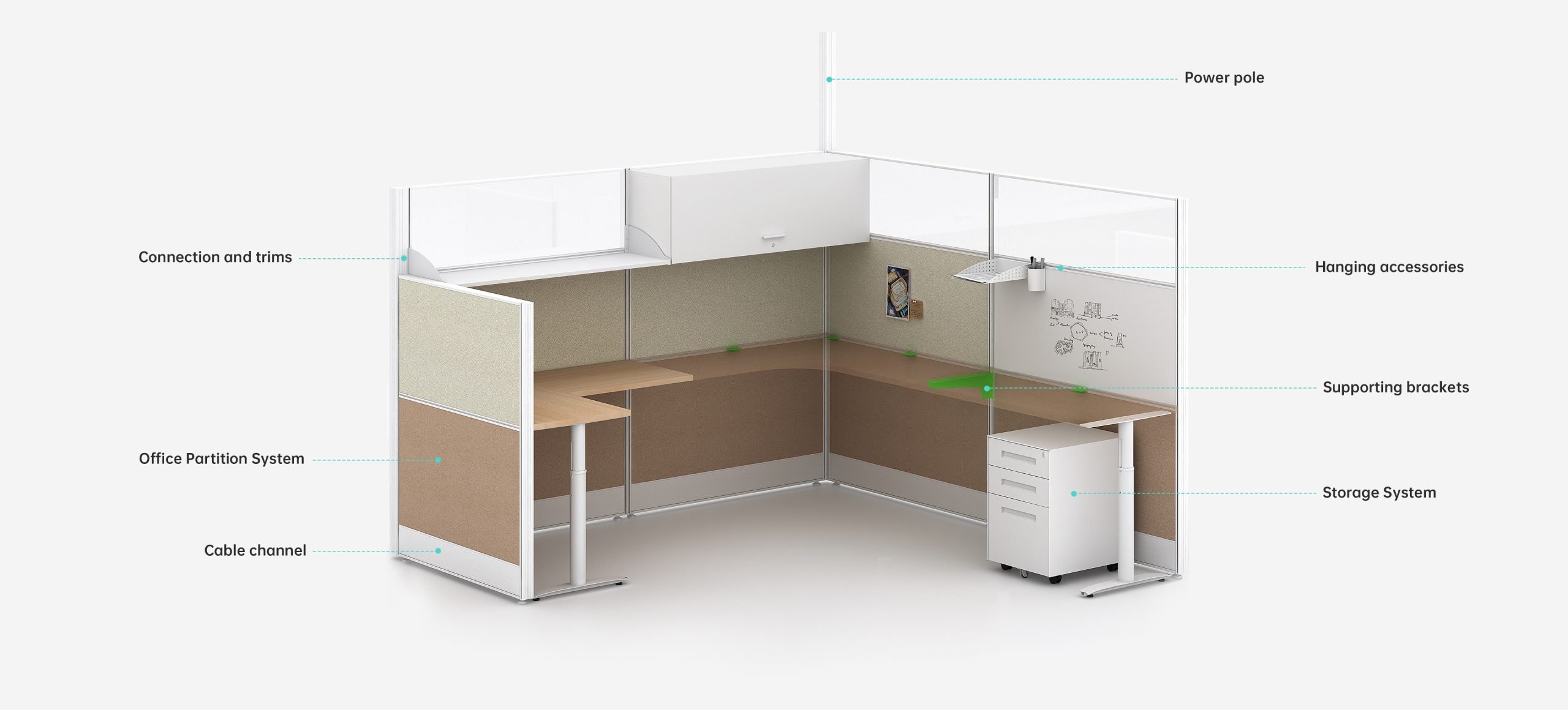T8 panel system enables diverse workspace configurations, ideal for private cubicles, modular workstations, call centers, and team collaboration zones.