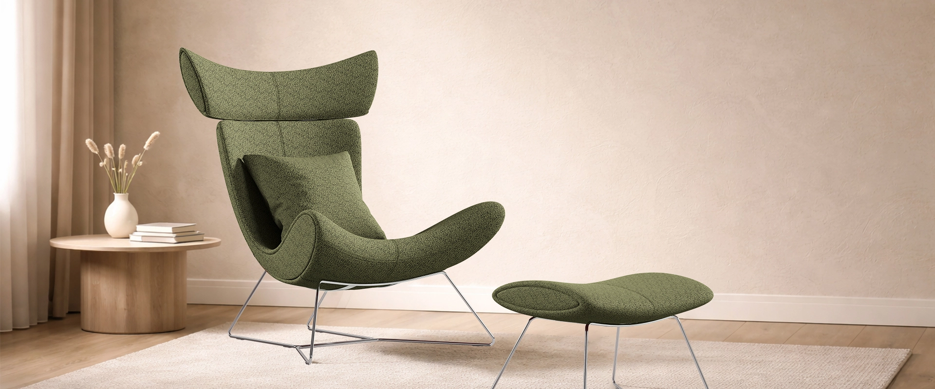 o elevate modern living and working spaces, this lounge chair (paired with its matching ottoman) emerges as a masterclass in ergonomic luxury and sculptural design—an iconic piece that balances comfort, functionality, and aesthetic refinement.